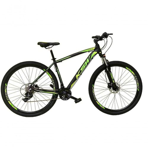 Bicicleta Aro 29 Ksw Xlt Alumínio 24v Câmbios Shimano Garfo Com Trava No Ombro - Preto/verde Tam.21