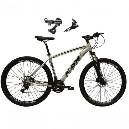 Bicicleta Aro 29 Ksw Xlt Alumínio 24v Câmbios Shimano Garfo Suspensão - Prata Tam.21