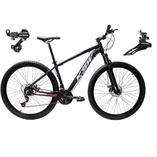 Bicicleta Aro 29 Ksw Xlt Alumínio 24v Câmbios Shimano Garfo Suspensão - Preto/vermelho/branco Tam.19