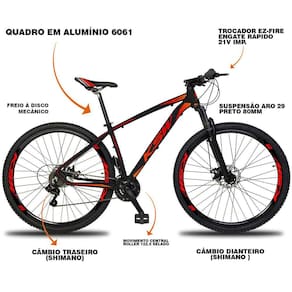 O quadro e pedivela em alumínio deixam a bicicleta mais leve, as 21 combinações de marchas oferecem um bom desempenho em todo tipo de terreno,