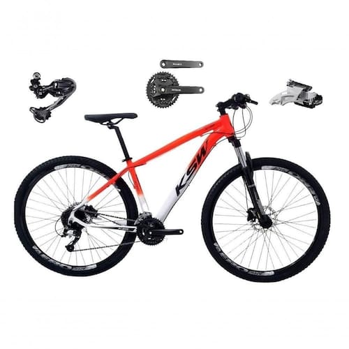 Bike aro 29, com quadro ksw xlt, nova na caixa a pronta , produto com ótima qualidade e acabamento, possui 27 marchas com sistema de alavancas rapid fire que a cada clique uma marcha é trocada, câmbio dianteiro shimano altus e traseiro shimano deore M592, garfo com suspensão e sistema de trava para melhor performance, sistema de freio a disco hidráulico, pneus com cravo baixo para uso em terra e asfalto. Bicicleta pré montada, vai precisar apenas fixar a roda dianteira, guidão, selim e pedais. Segue abaixo características da bike: