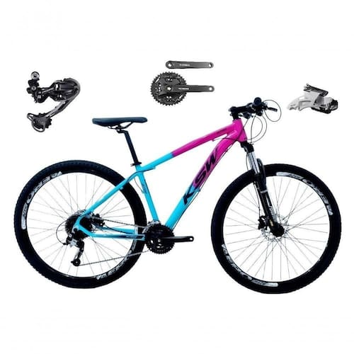 Bike aro 29, com quadro ksw xlt, nova na caixa a pronta , produto com ótima qualidade e acabamento, possui 27 marchas com sistema de alavancas rapid fire que a cada clique uma marcha é trocada, câmbio dianteiro shimano altus e traseiro shimano deore M592, garfo com suspensão e sistema de trava para melhor performance, sistema de freio a disco hidráulico, pneus com cravo baixo para uso em terra e asfalto. Bicicleta pré montada, vai precisar apenas fixar a roda dianteira, guidão, selim e pedais. Segue abaixo características da bike:
