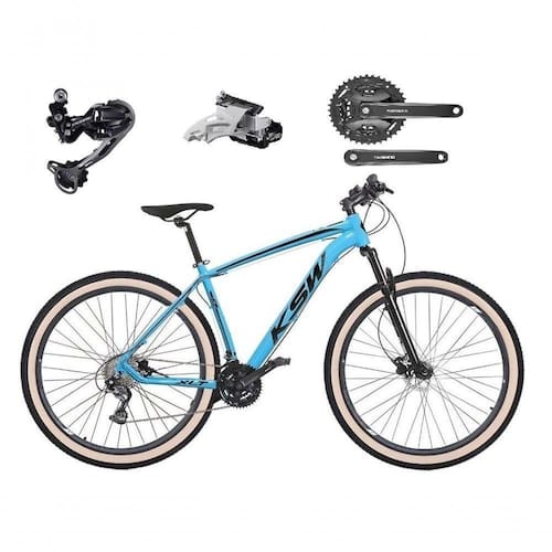 Bicicleta Aro 29 Ksw Xlt Deore E Altus 27v Freio Hidráulico Garfo Trava Pneu Faixa Bege - Azul Tam.15