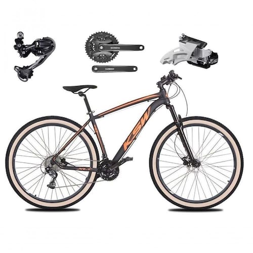 Bike aro 29, com quadro ksw xlt, nova na caixa a pronta , produto com ótima qualidade e acabamento, possui 27 marchas com sistema de alavancas rapid fire que a cada clique uma marcha é trocada, câmbio dianteiro shimano altus e traseiro shimano deore M592, garfo com suspensão e sistema de trava para melhor performance, sistema de freio a disco hidráulico, pneus com cravo baixo para uso em terra e asfalto. Bicicleta pré montada, vai precisar apenas fixar a roda dianteira, guidão, selim e pedais. Segue abaixo características da bike: