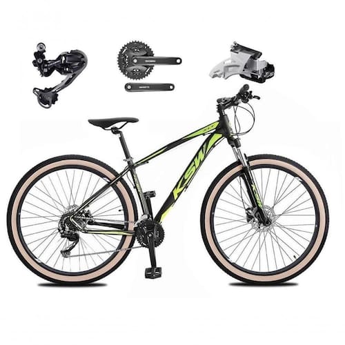 Bike aro 29, com quadro ksw xlt, nova na caixa a pronta , produto com ótima qualidade e acabamento, possui 27 marchas com sistema de alavancas rapid fire que a cada clique uma marcha é trocada, câmbio dianteiro shimano altus e traseiro shimano deore M592, garfo com suspensão e sistema de trava para melhor performance, sistema de freio a disco hidráulico, pneus com cravo baixo para uso em terra e asfalto. Bicicleta pré montada, vai precisar apenas fixar a roda dianteira, guidão, selim e pedais. Segue abaixo características da bike: