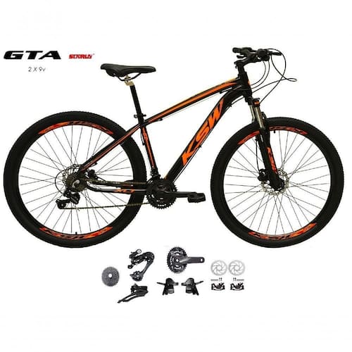 Bicicleta Aro 29 Ksw Xlt Kit 2x9 Gta Sunrun Freio Disco K7 11/36 Pedivela 24/38d Garfo Com Trava - Preto/laranja Tam.17
