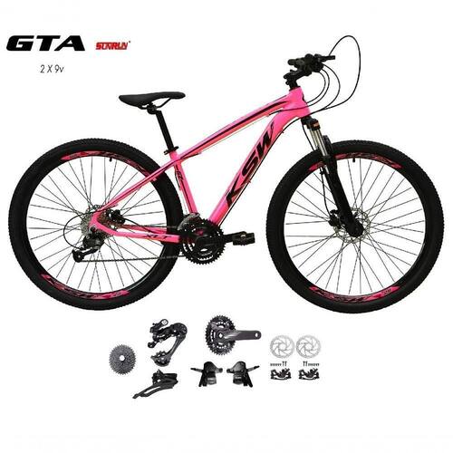 Bicicleta Aro 29 Ksw Xlt Kit 2x9 Gta Sunrun Freio Disco K7 11/36 Pedivela 24/38d Garfo Com Trava - Rosa Tam.17