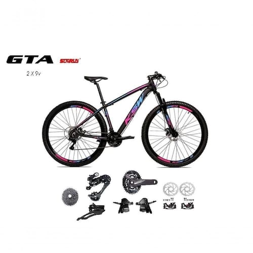 Bicicleta Aro 29 Ksw Xlt Kit 2x9 Gta Sunrun Freio Disco K7 11/36 Pedivela 24/38d Garfo Trava - Preto/pink/azul Tam.17