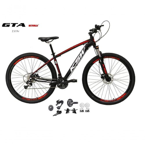 Bicicleta Aro 29 Ksw Xlt Kit 2x9 Sunrun Freio Disco K7 11/36 Pedivela 24/38d Garfo Trava - Preto/vermelho/branco Tam.19