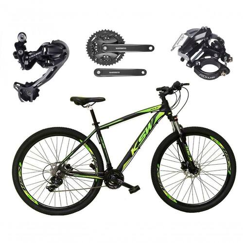 Bicicleta Aro 29 Ksw Xlt Shimano Deore E Altus 27v Freio Hidráulico Garfo Trava - Preto-verde Tam.21