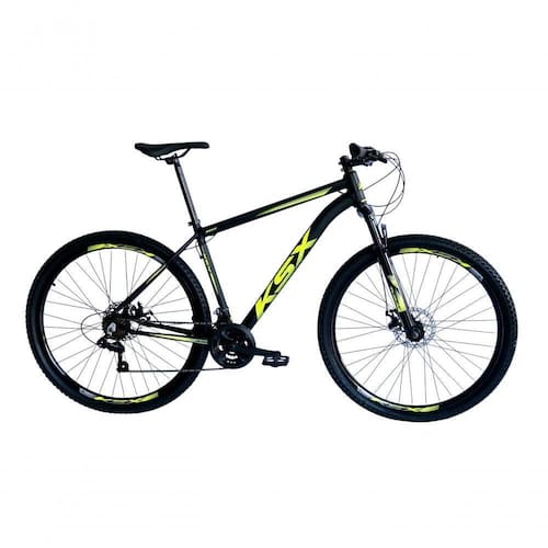 Bicicleta Aro 29 Ksx Sd7 21v Cabos Internos Alumínio Freios A Disco Garfo Suspensão Preto Amarelo Tamanho 19