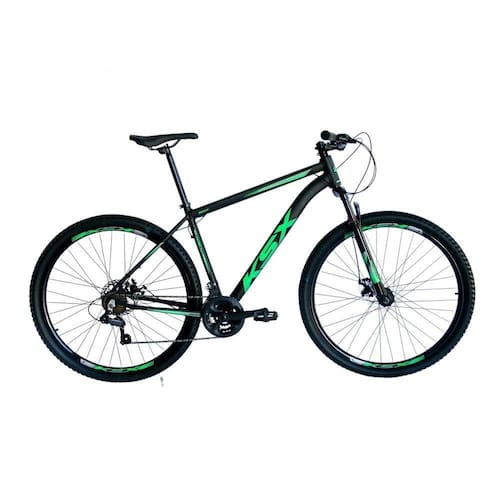 Bicicleta Aro 29 Ksx Sd7 21v Cabos Internos Alumínio Freios A Disco Garfo Suspensão Preto Verde Tamanho 19