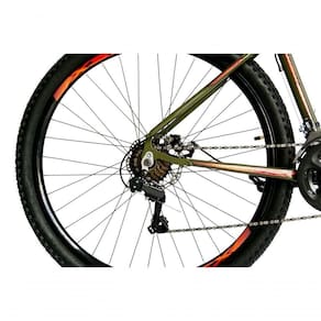 Bicicleta Aro 29 Ksx Sd7 21v Cabos Internos Alumínio Freios A Disco Garfo Suspensão Verde Militar Laranja Tamanho 15
