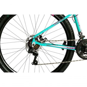 Bicicleta Aro 29 Ksx Sd7 21v Cabos Internos Alumínio Freios A Disco Garfo Suspensão Verde Tiffany Rosa Tamanho 15