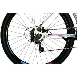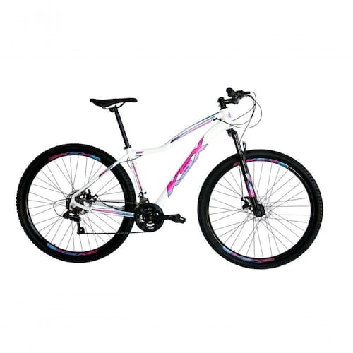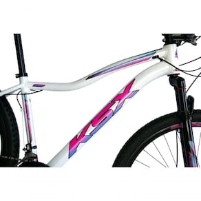 Bicicleta Aro 29 Ksx Sd7 Feminina 21v Cabos Internos Alumínio Freios A Disco Garfo Suspensão Branco Pink Azul Tamanho 15