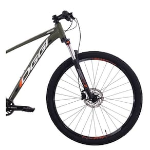Bicicleta Aro 29 Oggi Hacker HDS ESSA 8v - Verde/Branco/Laranja Tamanho 19 - A melhor escolha pra quem está começando a se aventurar no fora de estrada , com o conforto de freios a disco hidráulicos e suspensão com trava!