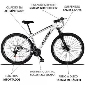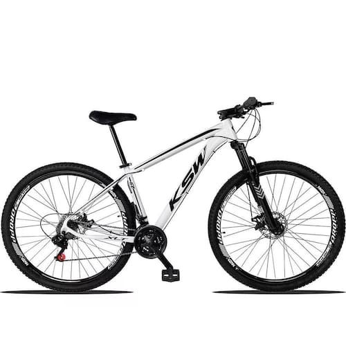 A bicicleta KSW XLT é uma ótima opção para quem quer curtir passeios com estilo e segurança, equipada com freios a disco, 21 níveis de marcha, pedivela em aço e suspensão dianteira, também pode ser usada em trilhas leves para quem quer iniciar na categoria MTB. OBS: Não recomendado para manobras radicais e trilhas pesadas.