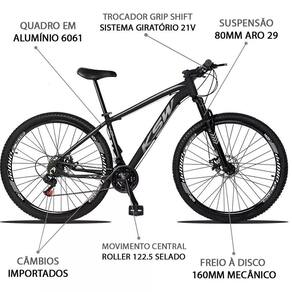 Bicicleta Aro 29 Quadro 19 Ksw Xlt Alumínio 21 Marchas Freio A Disco - PRETO