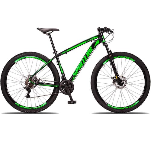 Com um quadro de Alumínio de ótima geometria para o MTB e um design exclusivo. Possui 24 combinações de marchas com trocadores rapidfire que facilitam as trocas entre catracas. Uma suspensão de amortecimento para absorção de impacto e freio a disco para melhor segurança do ciclista.