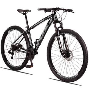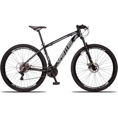 Bicicleta Aro 29 Spaceline Vega 24 Vel Câmbio Traseiro Shimano Freio a Disco Bike MTB Alumínio - 21-Preto+Cinza
