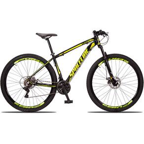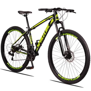 Com um quadro de Alumínio de ótima geometria para o MTB e um design exclusivo. Possui 24 combinações de marchas com trocadores rapidfire que facilitam as trocas entre catracas. Uma suspensão de amortecimento para absorção de impacto e freio a disco para melhor segurança do ciclista.