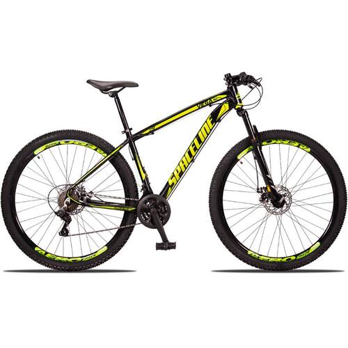 Bicicleta Aro 29 Spaceline Vega 24 Vel Câmbio Traseiro Shimano Freio a Disco Bike MTB Alumínio - 17-Preto+Amarelo