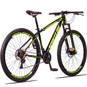 Bicicleta Aro 29 Spaceline Vega Alumínio 24 Vel marchas Freio a Disco hidráulico Suspensão MTB - 15-Preto+Amarelo