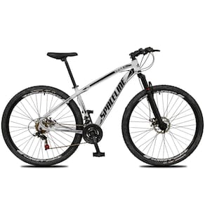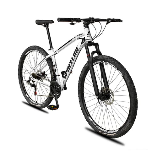 Bicicleta Aro 29 Spaceline Vega Alumínio 24v Freio a Disco Supensão MTB - 15-Branco+Preto