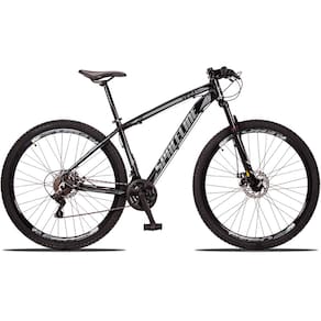 Bicicleta Aro 29 Spaceline Vega Alumínio Câmbios Shimano 24V Freio a Disco hidráulico Suspensão MTB - 19-Preto+Cinza