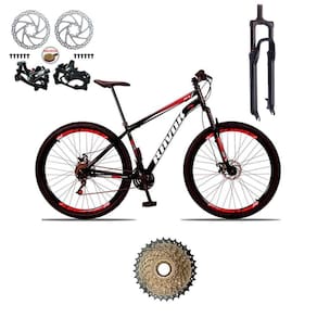 Bicicleta Aro 29 Suspensão Dianteira Bike Aço 21 Marchas Freio A Disco Cor:azul Celeste A bicicleta Ravok foi desenvolvida para quem quer realizar passeios urbanos. Com seu quadro em Aço Carbono, fornece segurança no seu pedal.O modelo possui 21 velocidades, cambio traseiro Shimano, freio a disco mecânico que proporciona segurança nas frenagens.Disponível em diversas cores que garante um estilo próprio para você.Veja abaixo a descrição detalhada dos componentes:QUADRO: Aço Carbono TAMANHO UNICOSUSPENSÃO DIANTEIRA Aro 29TROCADOR: Revo Shift (Luva)CÂMBIO TRASEIRO: SHIMANO TZ 31CÂMBIO DIANTEIRO: Paco 3vRODA LIVRE: catraca 7v indexPEDIVELA: Triplo em aço revestidoCORRENTE: 21vFREIOS: Disco 160mm - MecânicoCUBOS: 36 Furos em AçoAROS: Aero em alumínio parede dupla 36fPNEUS: Aro 29 x 2,10 MTB cravo baixoCÂMARA DE AR: 29 x 1.95 bico grossoMOVIMENTO CENTRAL: Roller 122.5 Preto SeladoMOVIMENTO DE DIREÇÃO: Aheadset Preto semi integradoESPAÇADOR: Aheadset Em AlumínioGUIDÃO: curvo em açoMANETES - NylonBANCO / SELIM: Sport PU MTBPEDAL: Nylon plataforma pretoOBS: IMAGEM MERAMENTE ILUSTRATIVA, BIKE VAI CONFORME DESCRIÇÃOOBSERVAÇÕES IMPORTANTES:- A bicicleta é montada, porém, para acomodação na embalagem e transporte, algumas peças são enviadas desmontadas.- A instalação é de responsabilidade do consumidor, orientamos que seja efetuada por mão de obra especializada.- Por motivo de transporte e manuseio, pode haver a necessidade de efetuar uma revisão (câmbios, freios) ao receber o produto.GARANTIA - Fábrica / 3 MesesNÃO COBRE DEFEITOS POR MAU USO OU PELA MONTAGEM / REVISÃO INADEQUADA DO PRODUTO.- A garantia será validada para as bicicletas montadas e revisadas por uma oficina especializada e é referente apenas ao primeiro proprietário.- A garantia não se aplica para os itens de desgaste natural tais como: Pneu, câmaras, cabos, pastilhas de freio, centragem de aros, pintura do quadro, componentes da transmissão (corrente, engrenagens do pedivela, engrenagens do cassete ou roda livre)..OUTRAS OBSERVAÇÕES:- Pode haver alguma diferença de tonalidade entre a imagem e o produto real, por conta do tratamento de imagens e a calibração de cores da sua tela.- Dependendo o lote do produto, algumas peças podem ter cores diferentes da imagem. Marca: Não Informado