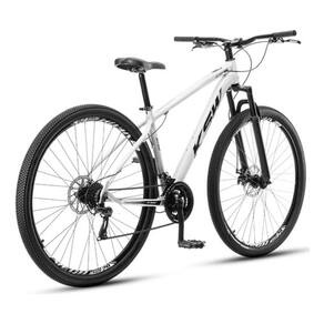 A suspensão dianteira auxilia na absorção de impactos em terrenos irregulares, e o pedivela triplo em aço garante maior eficiência durante o uso. Os pneus 29x2.10 oferecem boa aderência, e o selim ergonômico MTB proporciona conforto em pedaladas prolongadas.