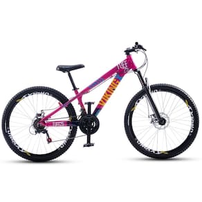 A Mountain Bike Vikingx Freeride Tuff 30 aro 26 é uma bicicleta projetada para resistência, desempenho e estilo. Com quadro em alumínio robusto, combina leveza e durabilidade, ideal para quem busca enfrentar diferentes tipos de terreno com confiança. Seu design moderno nas cores roxo e laranja agrega personalidade ao conjunto.