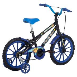 Caracteristicas: Aro: Polipropileno Quadro: Quadro aco carbono Garfo: Rigido Guidao: Guidao aco carbono 540 mm Freios: Freios V-Brake Rodas laterais: sim Para-lamas: sim Manoplas: Tiger Corrente: Corrente grossa 1/2 X 1/8 Selim: Selim toy Cobre-Corrente: Virgula Roda Livre: Roda livre 18 d Pedivela: Pedivela monobloco 115 mm preto Engrenagem: Engrenagem 32 D aco preta Pneus: Pneu 16 x 1,75 cross preto Movimento central: Movimento centra 45 c/ colar Peso Maximo recomendado -kg-: 51 kg