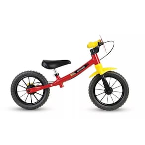 Bicicleta Infantil Balance Pre Bike Masculina Sem Pedal Aro 12 Nathor Fast Preço por Unidade Diversão sobre 2 rodas sem pedal. Características: Quadro, Garfo e Guidão em aço carbono Pneus em EVA Placa Frontal Mesa de Direção em Nylon Reforçado Selim em PU Abraçadeira do Selim em Alumínio Freio traseiro Guidão com limitador de giro Trava de segurança Cor: Vermelho com Amrelo A Balance Bike, ou bicicleta do equilíbrio, foi lançada para crianças com idade entre 2 a 5 anos desenvolverem habilidades motoras, percepção espacial e coordenação bilateral. Como não possui pedais nem rodinhas laterais, estimula as crianças a desenvolver o equilíbrio estático e dinâmico. Devido ao seu centro de gravidade baixo permite fácil acesso dos pés ao chão, o que transmite confiança e gera progresso em ritmo próprio. A Balance Bike auxilia as crianças a utilizar bicicletas maiores sem auxílio de rodinhas laterais. Especializada na fabricação de triciclos e bicicletas infantis para crianças, a Nathor conta com toda a qualidade e inovação dos seus produtos para ser a maior fabricante desse segmento na América Latina, sendo responsável pelo abastecimento das grandes Marcas. Especificações: Idade recomendada: 2 a 5 anos; Altura máxima recomendada da criança: 100 cm; Peso máximo recomendado da criança: 21 kg; Tamanho da roda: Aro 12; Cubagem: 0,042m³ Dimensões do produto ( C x A x L ): 86 x 55 x 43 cm; Peso: 2,780 kg; Dimensões da embalagem ( C x A x L ): 70 x 19 x 30 cm; Peso da embalagem com o produto: 3,460 kg. O produto requer montagem. Manual acompanha o produto.