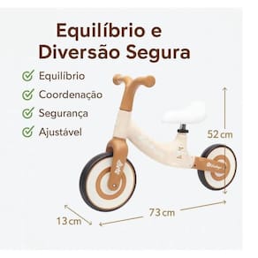Bicicleta De Equilíbrio Infantil Sem Pedal Marrom Ideal para introduzir as crianças no mundo do ciclismo de forma divertida, segura e educativa. Indicada para crianças a partir de 3 anos, ela foi desenvolvida especialmente para estimular o equilíbrio, a coordenação motora e a autoconfiança dos pequenos antes da transição para bicicletas com pedais. Seu design encantador em tons de rosa, com detalhes florais delicados, agrada tanto crianças quanto pais, combinando beleza e funcionalidade. A estrutura é leve, resistente e segura, facilitando o manuseio pela criança e garantindo maior durabilidade. O assento é confortável e possui ajuste de altura, adaptando-se ao crescimento da criança, enquanto as rodas largas, firmes e silenciosas proporcionam estabilidade e permitem o uso em ambientes internos e externos, como quintais, calçadas ou até dentro de casa. Por não possuir pedais, essa bicicleta incentiva o uso dos pés para impulsão e frenagem, promovendo um aprendizado natural do equilíbrio sobre duas rodas. Com acabamento de alta qualidade e materiais que priorizam a segurança, a bicicleta é o presente ideal para acompanhar os primeiros passos da criança rumo à independência sobre rodas, proporcionando momentos de lazer, desenvolvimento e muitas descobertas