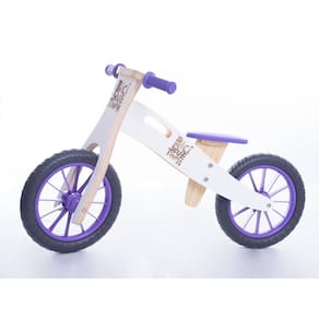 Bicicleta de equilíbrio MODELO NEVE ROXA 100% nacional e 100% de madeira reflorestada, com valorização de produtores locais.