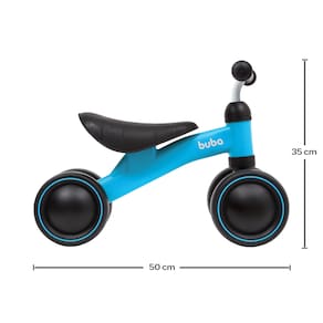 BICICLETA DE EQUILIBRIO - 4 RODAS AZUL - 13516 - BUBA A Bicicleta de Equilibrio 4 rodas da Buba, estimula o equilibrio e a coordenação motora do pequeno na fase de desenvolvimento, de forma divertida e segura. A criança aprende desde cedo a se equilibrar e adquirir autoconfiança, facilitando a transição para a bicicleta com pedais. É estável, pois possui rodas duplas na frente e atrás, com design diferenciado. Especificações: Marca: Buba Cor: Azul Idade recomendada: a partir de 12 meses Peso suportado: Até 20kg Dimensões aproximadas: 50 x 30 x 18 cm. Material: Plástico Produto Certificado pelo Inmetro OCP 00616 CE-RI/INNAC 00110-13A NM 300/2002 Garantia: 3 meses Ean: 7908103735160