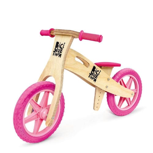 Bicicleta de equilíbrio sem pedal wooden rosaA melhor e mais bonita bike de equilíbrio infantil. Bicicleta sem pedal nacionalBiciquétinha traz ao brasil a bicicleta de madeira sem pedal que proporciona o equilíbrio para o público infantil. Bicicleta de equilíbrio infantil, com um conceito de qualidade e produção 100% nacional. Tudo feito com muita atenção e cuidado.Bicicletinha de equilíbrio (balance bike) modelo wooden rosa 100% nacional e 100% de madeira reflorestada, com produção que valoriza empreendedores locais.Materiais de qualidade: compensado naval (resistente à umidade) e multilaminado (resistente à impactos), rodas aro 12 com pneu 100% eva ( não fura e não esvazia), manoplas em borracha e assento estofado com regulagem de altura.- idade indicada bicicleta sem pedal: acima de 2 anos e até 25 kg.- 06 regulagens de altura do banco: de 30 a 41 cm (recomendado que a medida entre o chão até a virilha tenha aproximadamente 5cm a mais que a altura do banco).Bicicleta de equilíbrio de madeiraConceito: um produto leve também na consciência: biciquétinha (bicicleta de equilíbrio de madeira) foi construída pensando no desenvolvimento das crianças e no futuro. Sua matéria-prima, um compensando naval multilaminado é 100% brasileira e originária de madeira de reflorestamento. Um detalhe que traz leveza, resistência e praticidade, permitindo que ela possa ser facilmente carregada para qualquer lugar.Porque é sucesso na europa: os primeiros passos para pedalar, é não pedalar.Na primeira infância, as crianças ainda não estão prontas para pedalar. Biciquétinha (bicicleta de equilíbrio) é mais segura pois permite que a criança apoie os pés no chão a qualquer momento, tendo o controle em tempo integral e desenvolvendo a autoconfiança. As manoplas de borracha ajudam as crianças, e os pneus de eva maciço garantem conforto e aderência ao chão. Propositar pais e filhos brincarem juntos ao ar livre, sentir o vento, aprender brincando. Isso que sonhamos com a biciquétinha, oportunizar para mais crianças do brasil terem acesso aos conceitos das bicicletas de equilíbrios já consolidadas na europa, para que elas também aprendam a se equilibrar, desenvolvam a autoconfiança e coordenação motora, com rápido aprendizado e diversão. Diferenciais:- compensado naval multilaminado (resistente à impacto e à umidade);- banco em espuma e altura regulável;- pneus aro 12 em eva (não fura e não esvazia);- manoplas emborrachadas com proteção lateral;- 100% feito no brasil (fácil manutenção e garantia);- 100% madeira reflorestada.CaracterísticasPeso: 2,8 kg (super leve - criança consegue carregar)Dimensões:(l x p x h): 70x50x17 cm (caixa)(l x h x c) 82 x 50 x 36 cm (produto)Modelo: wooden rosaMarca: biciquétinhaGarantia: 01 anoIdade ideal: acima de 02 anos.Certificação inmetroCe-bri/brics 00648-17Nm300/2002 - ocp 0098Comprar bike de equilíbrio sem pedal, direto de fábrica. Indicado para crianças a partir de 02 anos. Os primeiros passos para pedalar Marca: Biciquetinha