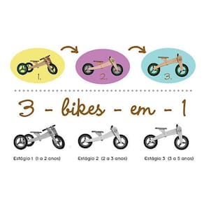A Woodbike é uma bicicleta pedagógica, fácil de montar, feita com madeira de reflorestamento, que estimula o equilíbrio e a coordenação motora de crianças de 1 a 5 anos. É um produto sustentável, que evolui com seu filho, possui giro limitado do guidão e é oferecida pela Camará Movelaria em 4 diferentes cores: azul, verde, vermelha e rosa, a versão 3 em 1 é indicada para crianças de 1 a 5 anos.
