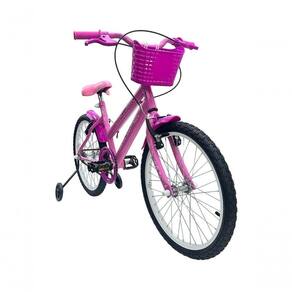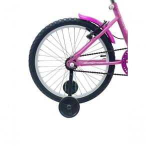 A bicicleta rosa com rodas de treinamento proporciona conforto e segurança, ideal para crianças a partir de 5 anos. Freios v-brakes garantem praticidade e leveza.