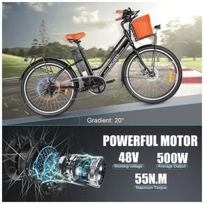 A bicicleta elétrica ANCHEER 26 é a combinação perfeita de portabilidade, desempenho e estilo. Equipada com uma bateria de 48V374Wh estrategicamente posicionada sob o selim, oferece autonomia de até 80km, ideal para deslocamentos diários. Seu potente motor de pico 750W proporciona a potência necessária para enfrentar qualquer trajeto. O novo display LCD atualizado exibe claramente velocidade, quilometragem e função de cruzeiro. Com freios a disco bidirecionais mecânicos, a bicicleta garante uma frenagem estável. O ajuste de marchas de alta velocidade melhora a capacidade de escalada e a adaptação a diferentes terrenos. Além disso, o design elegante e retro, com cesta na frente, torna essa bicicleta elétrica um verdadeiro destaque. Fácil de montar e com o selim extra largo e acolchoado, proporciona conforto excepcional durante o passeio.