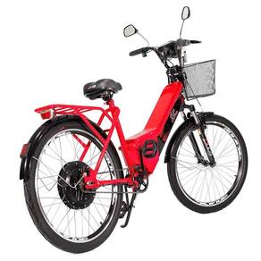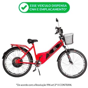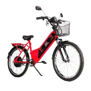 Bicicleta Elétrica - Aro 24 - Street Pam - 800w - Vermelha - Plug And Move Bicicleta Elétrica - Aro 24 - Street PAM - 800w - Vermelha - Plug and Move: a Bicicleta Street PAM Elétrica é a alternativa para você que busca agilidade, economia e performance no cotidiano. Ela tem potente motor de 800w, capaz de atender diferentes necessidades como trabalho, transporte e até mesmo diversão com a família. A Street PAM é a bicicleta elétrica um ótimo custo-benefício para você locomover-se. Você também pode desligar o motor e utilizar como um bicicleta comum, apenas pedalando. Detalhes: - Consumo de eletricidade é de apenas 2 centavos por km rodado- Você pode recarregar com facilidade em qualquer tomada- Proporciona segurança, economia e muita praticidade- Alta qualidade, resistência e durabilidade- Produto ecologicamente correto: não polui e não emite ruídos- Pedal assistido (quando você pedala o motor é ativado)- Painel digital com indicador de nível de bateria, velocímetro, painel de tensão de bateria e parada (P)- Buzina de alerta- Sistema de segurança inteligente com alarme- Farol diurno e farol de LED noturno com foco - Chaves liga-desliga e de alarme- Pode ser carregada em uma tomada comum- Com manete de freio- Botão de velocidade e botão de buzina- Compartimento de bateria e de modulo seguros- Bagageiro- Sinaleira a pilha- Paralamas dianteiro e traseiro- Refletor - Motor de 800w- Sensor de pedal assistido- Tripé lateral - Freio v-brake- Espelhinhos retrovisores- CestaInformações:- Produto: Bicicleta Street PAM Aro 24- Marca: Plug and Move- Coleção: Street PAM- Tipo: Bicicleta Elétrica com Bateria Selada- Categoria: E-bikes e MUV- Dimensões aprox. (C x A x L): 188 cm x 115 cm x 60 cm - Painel de Exibição: com indicador de nível de energia, velocímetro, painel de tensão de bateria e parada (P)- Segurança: Alarme sonoro com trava da roda traseira (Sistema antifurto inteligente)- Rodas / Pneus: Aro 24 - Alumínio Duplo- Altura Indicada (Min-Max): 1.50m a 2.10m- Autonomia Média: de 25 a 35 km por carga (A autonomia depende do peso do condutor, tipo de bateria, inclinação do terreno, auxílio dos pedais, velocidade média, calibragem dos pneus, etc. Porém a autonomia média combinada - com auxílio dos pedais - é de até 35km)- 03 níveis de velocidade: Eco / Normal / Power - Velocidade máxima: limitada a 32km/h (De acordo com a Resolução 996 art 2 II Contran)- Peso máximo suportado: capacidade de carga é até 120Kg (para as especificações foi considerado a carga de 90Kg, caso o condutor/passageiro somados ultrapasse esse peso só alterará na autonomia descrita)- Farol: com LED- Pedais: Pedal assistido (pedal system)- Conteúdo:- 01 Bicicleta Elétrica- 02 Chaves de ignição- 02 Controles do alarme - 01 Carregador de bateria inteligente Bivolt 110/220 - 04 Baterias 12v 15ah (já instaladas) - Tempo de carregamento: entre 06 a 08 horas (nunca deixe carregando mais que 08 horas)- Recomendação: acima de 18 anos de idadeEspecificações:- Fabricante: Duos Bikes- Referência: STRVM24- Código de Barras: 7906234245596- Embalagem (C x A x L): 180 x 88 x 32 cm- Embalagem (Peso): 50 kg- Motor: 800w de potência - Bateria: selada 48V/15ah (04 baterias de 12v 15ah)- Freio: V-Brake - Material / Composição:- Manete em Alumínio - Aro 24: Alumínio- Guidão: Aço Reforçado - Pedal: Plataforma em alumínio tipo sueco- Quadro: Aço RígidoObservações:- A bicicleta é enviada pré-montada: a bicicleta segue revisada, mas por motivo de acomodação na embalagem para transporte ela não vai completamente montada.- A instalação e revisão final é de responsabilidade do cliente. Sugerindo que seja efetuada por uma oficina especializada- O tempo de carregamento é entre 06 a 08 horas (nunca deixe carregando mais do que 08 horas)- As baterias devem ser carregadas a cada 15 dias mesmo que não sejam utilizadasAviso:- As imagens são meramente ilustrativas- Os pesos, tamanhos, pesos e medidas são aproximados- As cores e estampas dos produtos podem ter variações- As informações são de responsabilidade do fabricante ou fornecedor Marca: Plug and Move