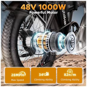 Motor potente com pico de 1000W: Com o suporte de um motor potente de 750 W (pico de 1000 W), ela pode atingir 48 km/h no modo de aceleração puramente elétrico, com um torque de até 65, e pode facilmente superar uma inclinação de 30 graus. As bicicletas elétricas para adultos oferecem potência potente, partidas mais rápidas e capacidades de subida aprimoradas, tornando-as adequadas não apenas para o deslocamento diário, mas também para ir à praia, escalar e viajar com amigos.