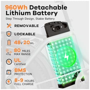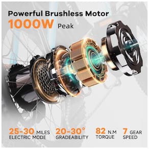Desfrute de aventuras emocionantes sem parar com a Bicicleta Elétrica Kebiko F7. Equipada com um motor sem escovas de 1000W, alcança até 30 MPH e supera facilmente colinas íngremes. A bateria de lítio de 48V 20Ah oferece uma autonomia de até 80 milhas, com design removível para facilitar o carregamento. Com suspensão dianteira e traseira, freios a disco duplos e 7 marchas, proporciona uma pedalada suave e confortável em qualquer terreno. Dobrável e leve, é fácil de transportar. Aproveite a conveniência da porta de carregamento USB e dos modos de pilotagem variados. Uma ótima opção para deslocamentos urbanos e aventuras off-road.