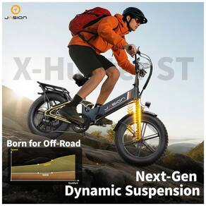 A bicicleta elétrica dobrável Jasion X-Hunter ST azul Storm foi desenvolvida para adultos que buscam um modelo compacto com quadro rebaixado para uso urbano, trilhas leves e deslocamentos em diferentes tipos de terreno. O quadro em alumínio tipo step-through facilita subir e descer da bicicleta, enquanto os pneus largos 20 x 4 e a suspensão dupla proporcionam estabilidade e conforto em vias pavimentadas, estradas de terra, cascalho, neve e areia.
