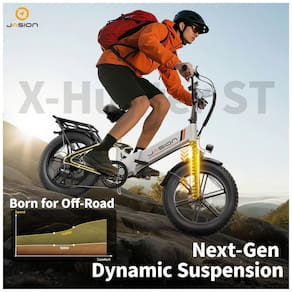 A bicicleta elétrica dobrável Jasion X-Hunter ST branca Glacier foi desenvolvida para adultos que buscam um modelo compacto com quadro rebaixado para uso urbano, trilhas leves e deslocamentos em diferentes tipos de terreno. O quadro em alumínio com geometria step-through facilita subir e descer da bicicleta, enquanto os pneus largos 20 x 4 e a suspensão dupla proporcionam maior estabilidade e conforto em vias pavimentadas, estradas de terra, cascalho, neve e areia.