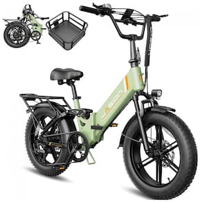 A bicicleta elétrica dobrável Jasion X-Hunter ST verde com cesto foi desenvolvida para adultos que buscam um modelo compacto com quadro rebaixado para uso urbano, trilhas leves e deslocamentos em diferentes tipos de terreno. O quadro em alumínio com geometria step-through facilita subir e descer da bicicleta, enquanto os pneus largos 20 x 4 e a suspensão dupla proporcionam estabilidade e conforto em vias pavimentadas, estradas de terra, cascalho, neve e areia.