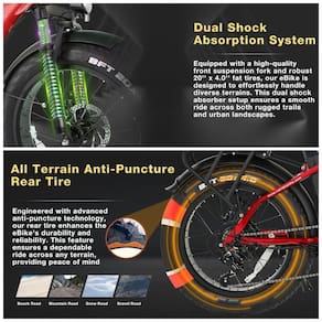 ?Design Durável e Ergonômico?A Bicicleta Elétrica Narrak possui um quadro Step-Thru/Over robusto e dobrável e um garfo dianteiro com amortecimento de impacto para um passeio suave em qualquer terreno. Seu bagageiro removível e selim de alumínio de alta qualidade suportam até 127 kg, garantindo uma experiência de primeira qualidade em cada passeio.
