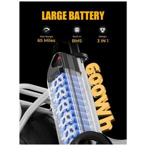 PNEUS GORDOS 10 centimetros E AMORTECEDOR Os recém atualizados pneus gordos resistentes a furos de 10 centimetros de largura têm melhor desempenho e uma aparência mais fria. Com suspensão dianteira e espigão de selim excelentes. Além das estradas da cidade, a Heybike Ranger pode andar na neve, praias, estradas montanhosas acidentadas, etc.