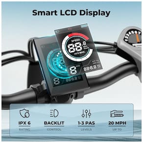 O sistema oferece quatro modos de funcionamento: pedal assistido com até 3 níveis de assistência, modo elétrico puro acionado pelo acelerador, pedal convencional e modo de impulso entre 4,5 e 7,5 km/h para apoio ao empurrar a bicicleta em subidas. O display LCD com retroiluminação ajustável em diferentes níveis exibe velocidade média e máxima, odômetro, nível de assistência e demais informações relevantes para o acompanhamento do trajeto.